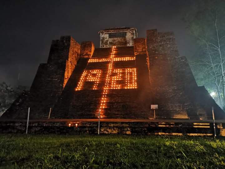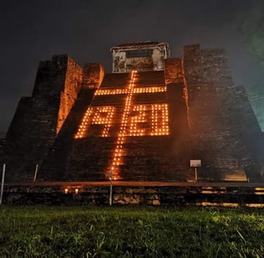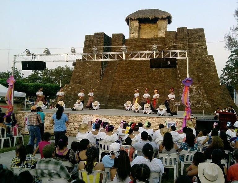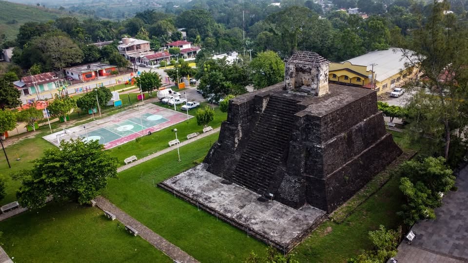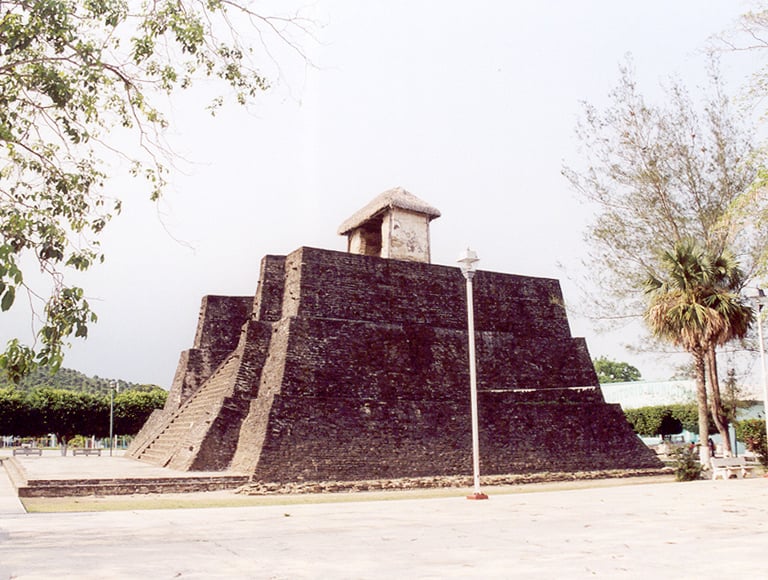En el centro de la población se encuentra un edificio de forma piramidal conservando la mayor parte de su estructura de 11,3 metros de altura, destaca la escalinata y la estructura que remata el edificio, probablemente dedicada a un templo. Cabe mencionar que es una de las pocas estructuras de su tipo en la zona mesoamericana.