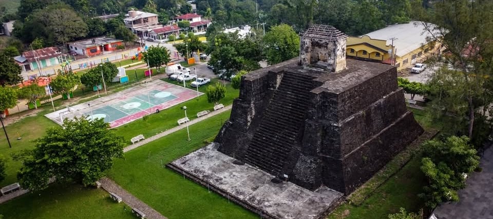 En el centro de la población se encuentra un edificio de forma piramidal de 11,3 metros de altura, destaca la escalinata y la estructura que remata el edificio, probablemente dedicada a un templo. Cabe mencionar que es una de las pocas estructuras de su tipo en la zona mesoamericana.